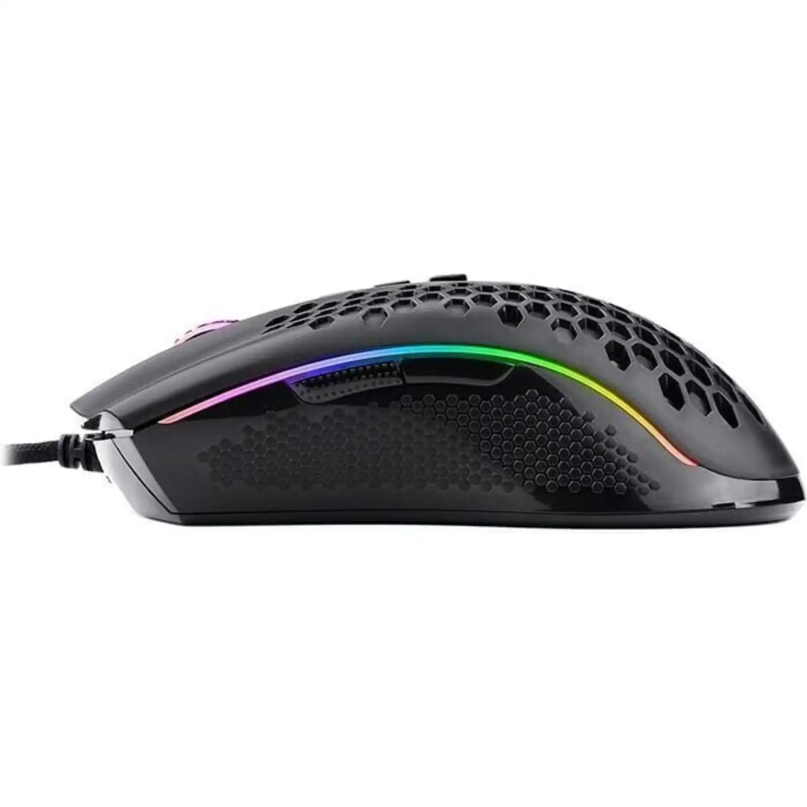 At 85g the Redragon M808 Storm Lightweight RGB Gaming Mouse is the lightest mouse of Redragon with over the years using preference testing that fits perfectly for any hands and any tasks. Whether it be a single click or swipe, we want everything to be totally in your control. The cutout honeycomb shell covered with comfy frosted finish gets you the ambidextrous buff, its design offers unlimited possibilities and infinite potential to maximize your aim. Not only the material and design of the mouse itself, but also the cable is made of the lightest material to kill the weight and the friction as much as possible. All buttons are available for redefinition and assignment of complex macro keybindings, making it easy to deal with any impossible mission.