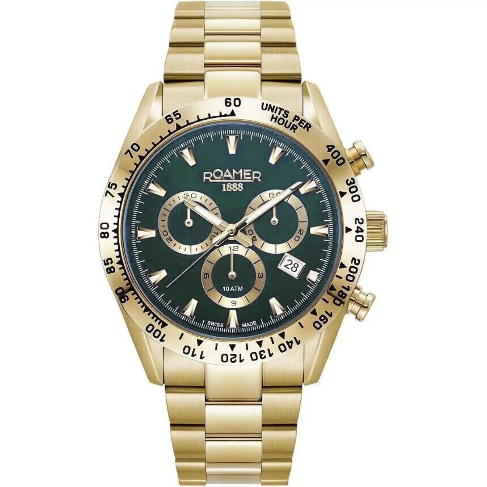 -53% Roamer Monza 100 850837487520 Men’s Watch Chronograph, Quartz Watch, Stainless Steel Case, Stainless Steel Strap, Gold