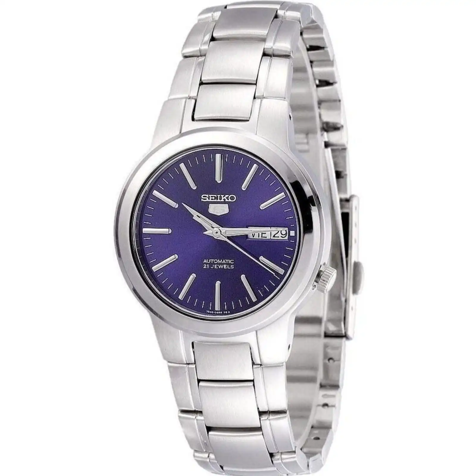 Stainless Steel Case Stainless Steel Bracelet Automatic Movement Caliber 7S26 Mineral Crystal 21 Jewels Blue Dial Day And Date Display See Through Case Back Fold Over Clasp 30M Water Resistance Approximate Case Diameter 37mm Approximate Case Thickness 11mm