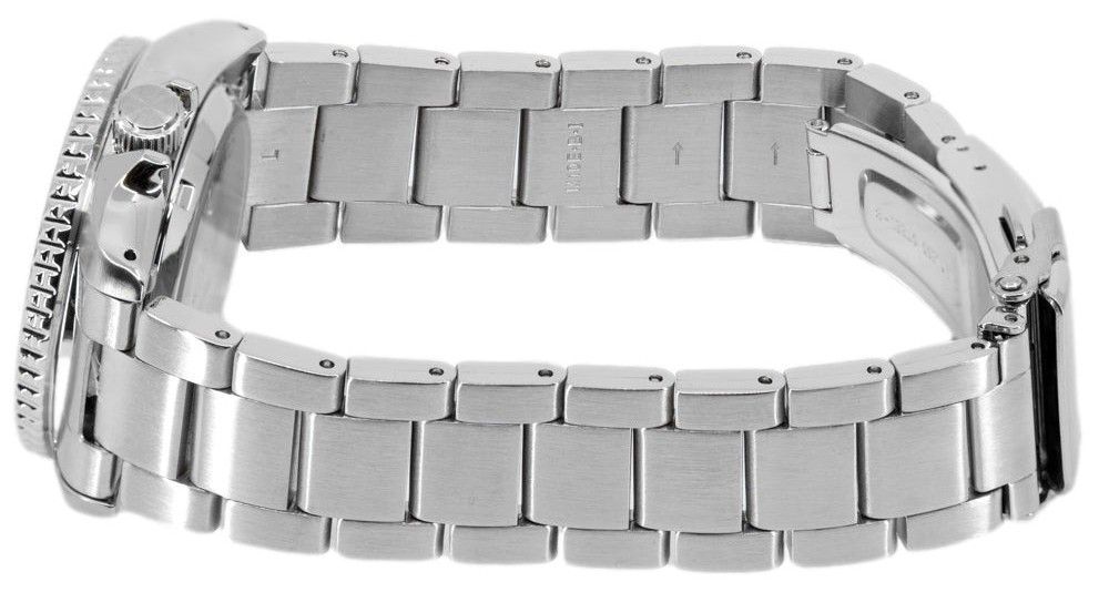 Stainless Steel Case Stainless Steel Bracelet Automatic Movement Caliber: 4R36 24 Jewels Hardlex Crystal Teal Dial Analog Display Power Reserve Up To 41 Hours Luminous Hands And Markers Day And Date Display Uni Directional Rotating Bezel Pull Out Crown See Through Case Back Deployment Clasp 100m Water Resistance
