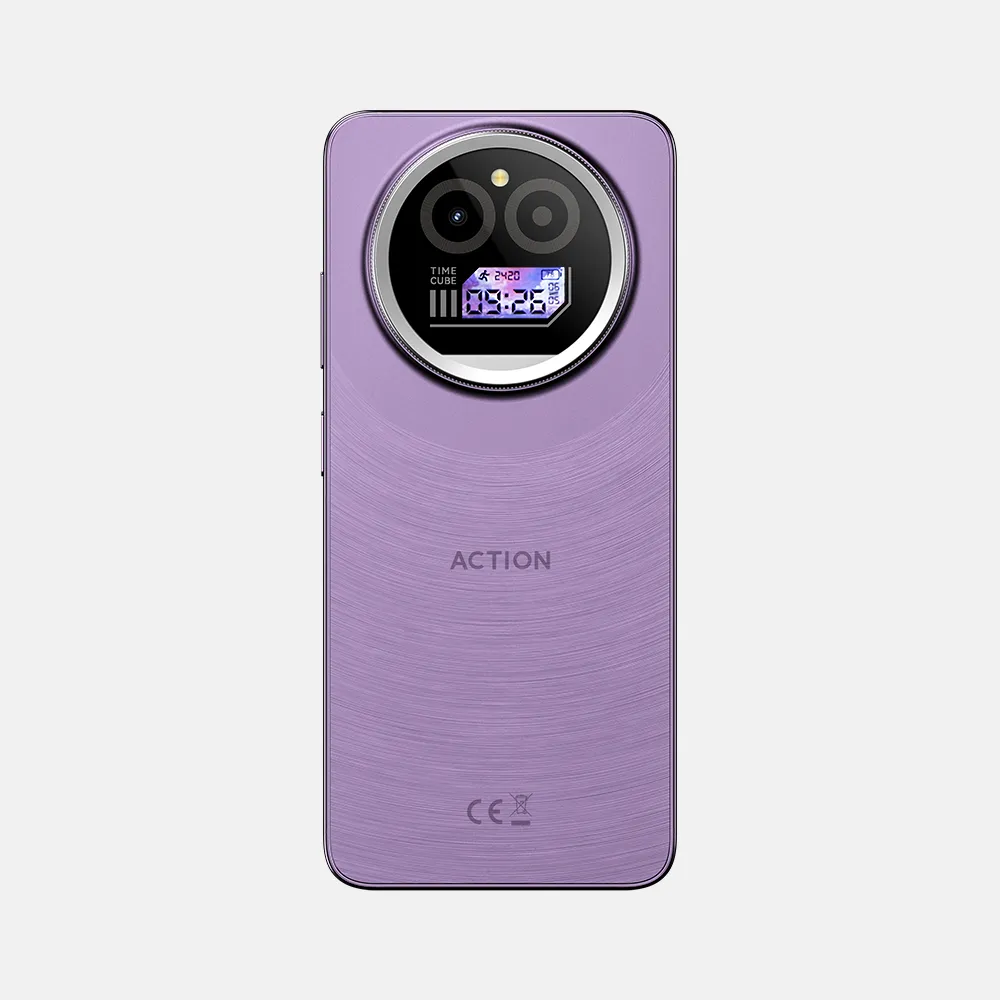 Smartphone/6.88 inch HD/Dual Display/8GB/256GB/16MP/Dual Sim/Fingerprint Recognition/5100mAh/10W/ Google Play. (F150-ACTION-A5PRO-PURPLE)