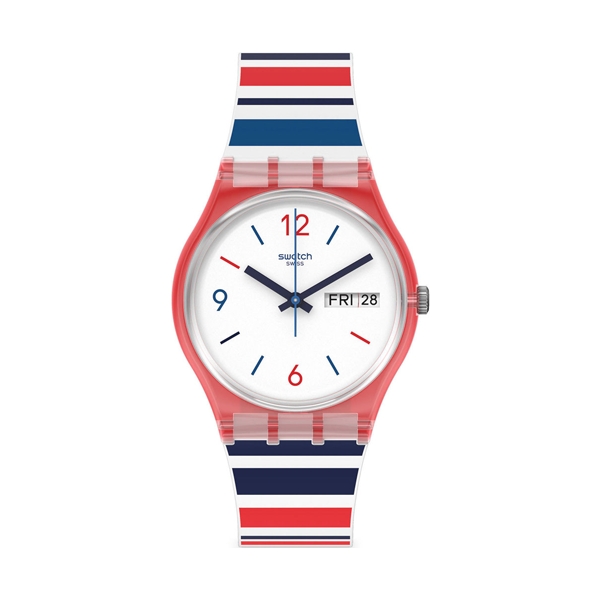 WR: 3 ATM – Case: 34 mm – Gender: Unisex – Case Material: Plastic – Strap Material: Silicone – Movement: Quartz – Functions: Day & Date – Glass: Plastic – Product Type: Wristwatch – Made in: Switzerland – Packaging: Official Box