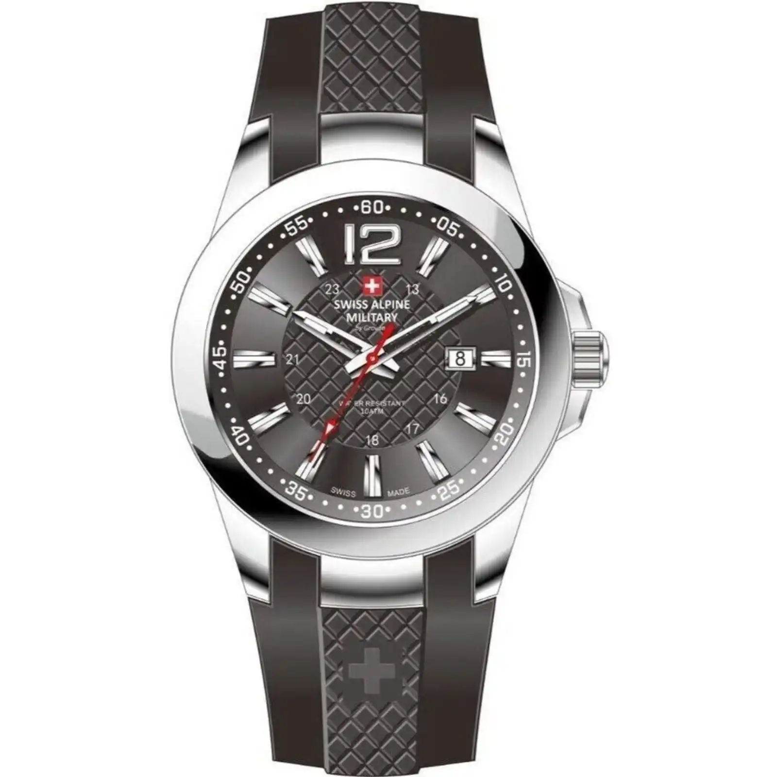 Swiss Alpine Military Combat Air Ladies Silicone Strap Black Dial Quartz 7758.1837 combines sleek style with unmatched durability. The striking black dial stands out with clear, easy-to-read markers, offering both elegance and practicality. Equipped with precise quartz movement, this watch ensures accurate timekeeping for all occasions, whether you’re on a busy schedule or enjoying outdoor adventures. The comfortable silicone strap guarantees flexibility and a secure fit, making it perfect for women who lead an active lifestyle. With its robust design and modern look, this watch is a perfect blend of performance and fashion.