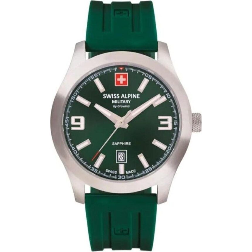 Swiss Alpine Military Combat Pro Rubber Strap Green Dial Quartz 7056.1834 100M Men’s Watch