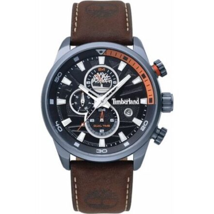 A Timberland watch would not be complete without a signature leather strap, and the Henniker delivers in spectacular fashion. The strap is fashioned from genuine, high-quality tan brown leather that is both supple and incredibly durable. This is the same ethos that goes into their world-famous boots. The leather is designed to develop a unique patina over time, becoming more comfortable and personal to you with every wear. It tells the story of your journeys. The strap is finished with contrasting, heavy-duty off-white stitching along the edges—a classic design cue that further reinforces the brand’s rugged, artisanal heritage. Secured with a robust gunmetal-plated stainless steel pin buckle, also bearing the Timberland logo, the strap ensures your watch remains comfortably and securely on your wrist all day long.