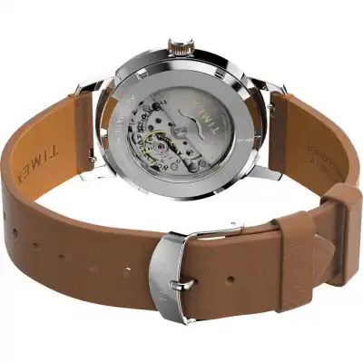 - Case: 40mm silver-tone stainless steel with an exhibition case back