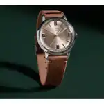- Dial: Natural / Beige / Champagne dial with silver-tone hands and Arabic numeral/index markers
