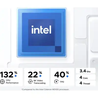 - Powered by Intel® X86 12th Generation N Series with 4 cores and 4 threads for efficient multitasking