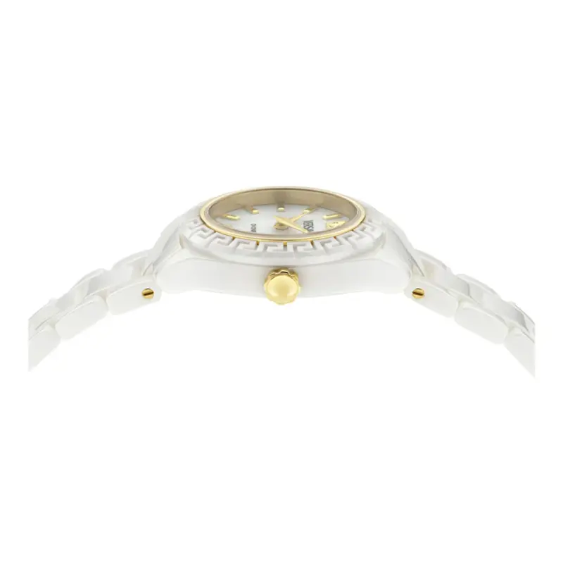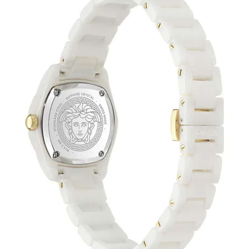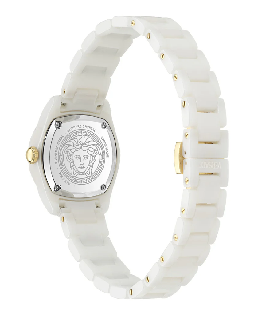 The Versace DV One Mini (VE9F00224) is a celebration of architectural beauty and material innovation. By shrinking the legendary DV One silhouette to a delicate 28mm, Versace has created a timepiece that is both a functional watch and a piece of high-fashion jewellery. Crafted entirely from pristine white ceramic and featuring the iconic Greek Key motif, this watch is designed for the modern woman who values the permanence of Swiss engineering and the bold, unmistakable DNA of Italian design.