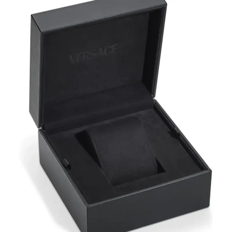 - 3D Greca Engraved Bezel: The top ring features the legendary Versace Greek Key pattern physically etched into the ceramic for a high-depth, tactile aesthetic.