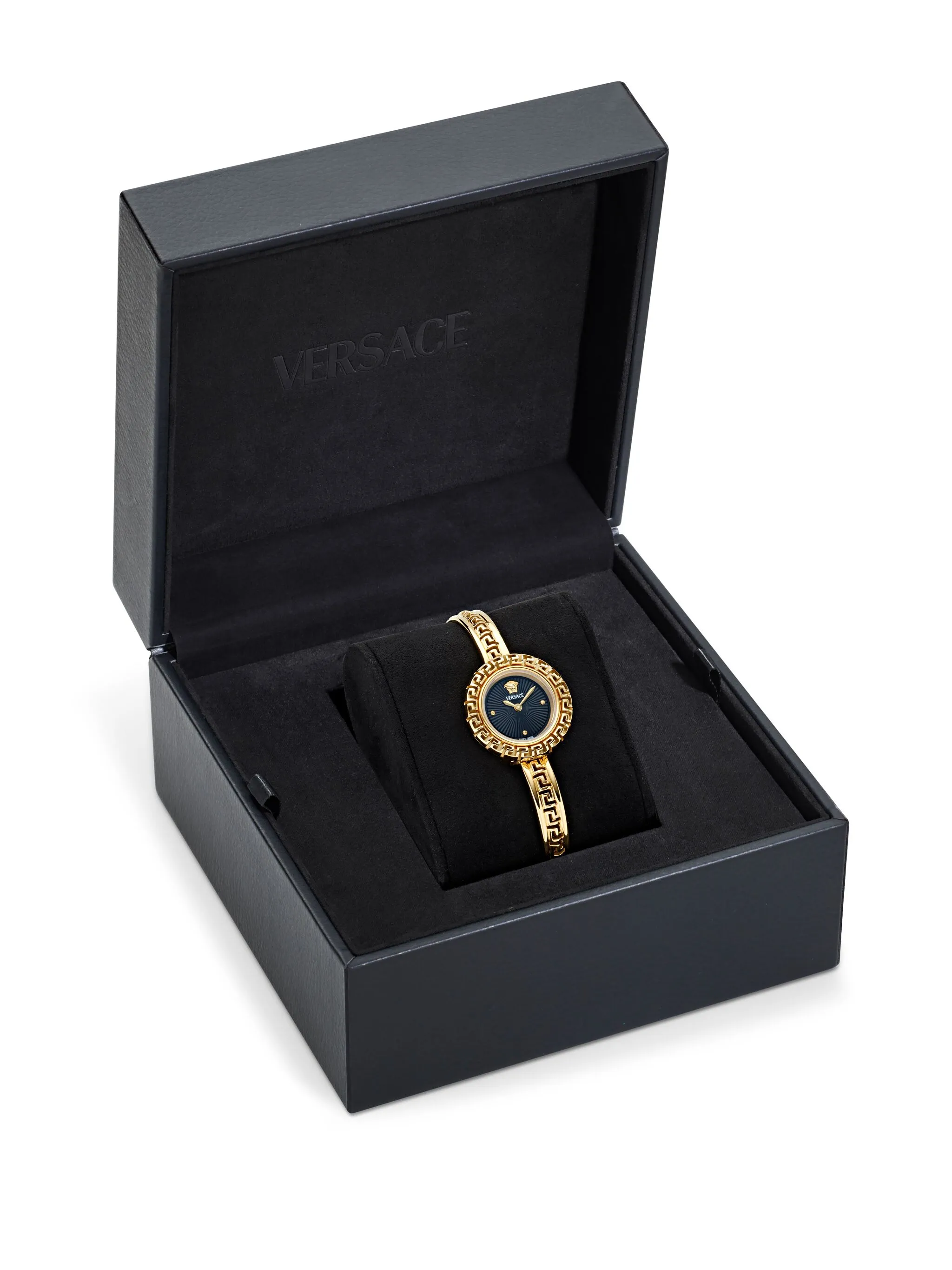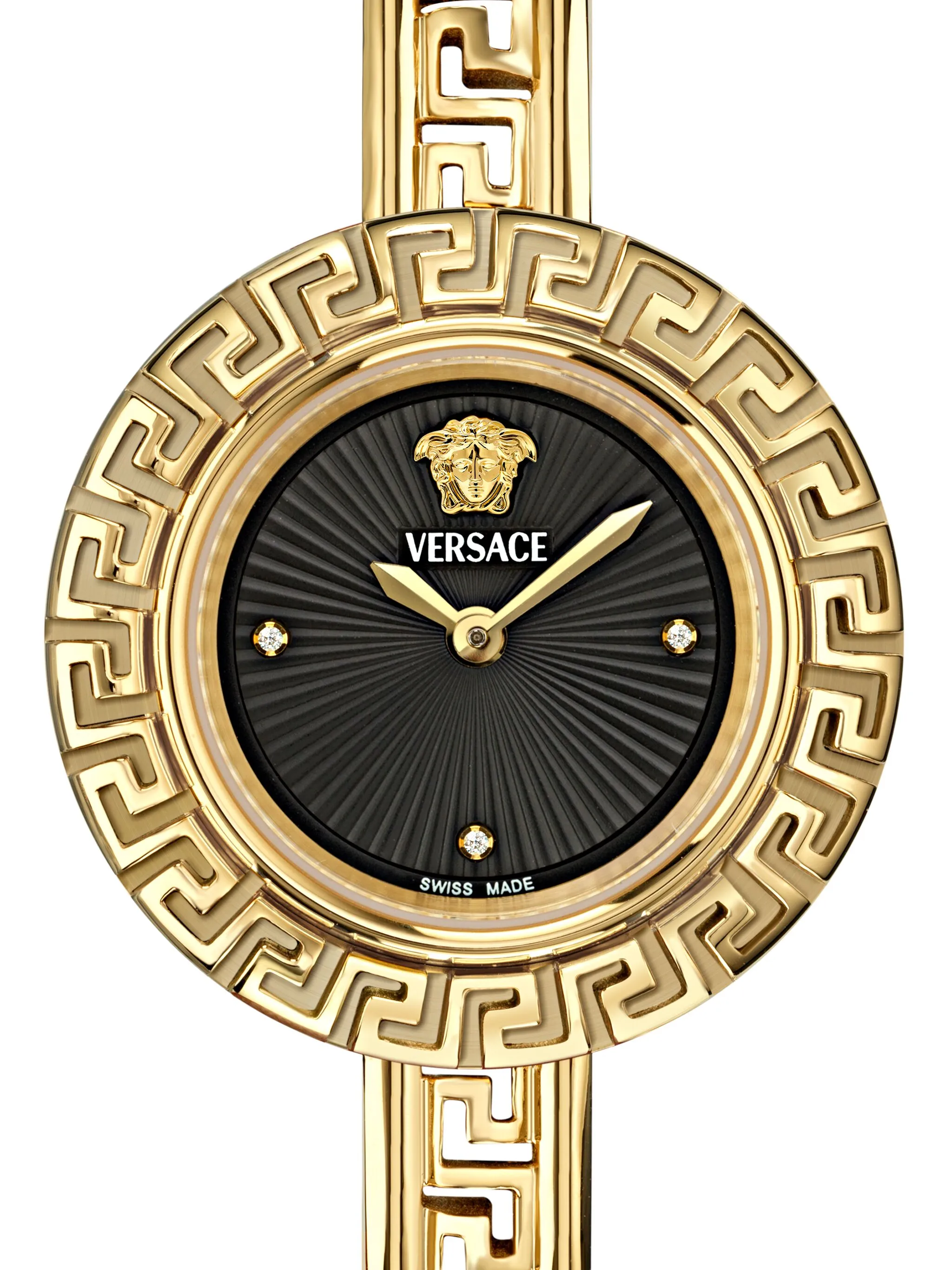 - Tubular Greca Sculpture: The unique case and bracelet are shaped into the legendary Greek Key pattern, providing a 3D architectural look in polished IP yellow gold.
