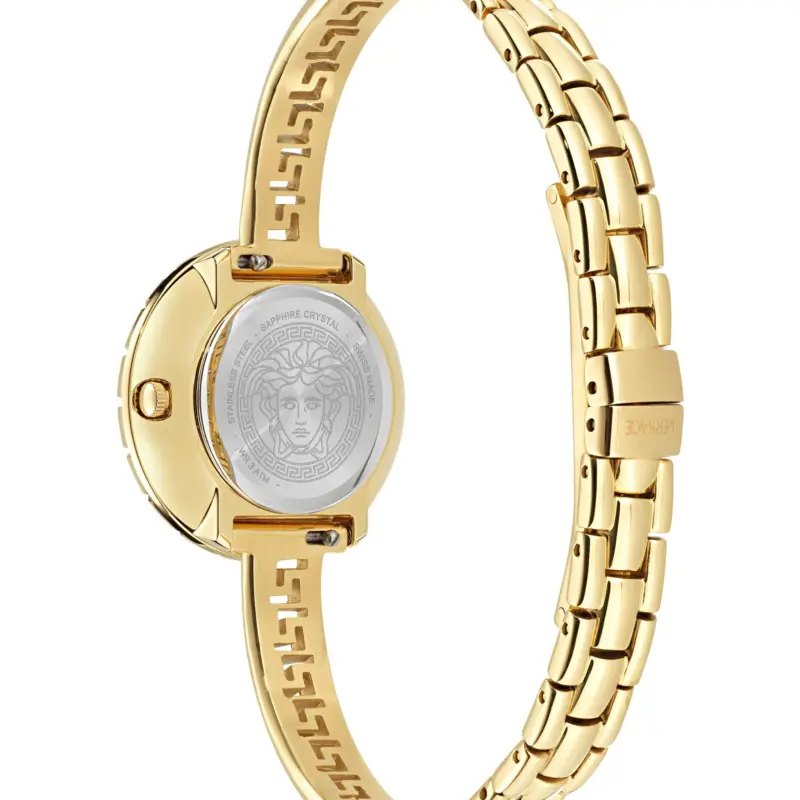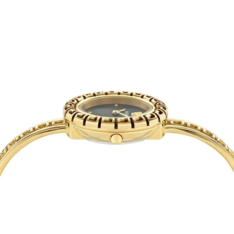 The Versace La Greca (VE8C00524) is a tour de force of jewelry design, where the lines between a timepiece and a high-fashion accessory are beautifully blurred. This 28mm petite watch is a physical embodiment of the Versace DNA, featuring the iconic Greek Key motif transformed into a sculptural, tubular case and bracelet. Designed for the woman who demands both the brilliance of diamonds and the heritage of Italian luxury, the La Greca is a timeless addition to any collection.
