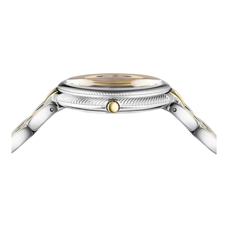 To maintain the radiant finish of your Versace Thea VE2CA0623, we recommend a simple but consistent care routine. The 316L stainless steel and IP gold plating should be wiped with a soft, dry microfibre cloth after each wear to remove any oils or environmental residues. This is particularly important in South Africa’s diverse climates to ensure the gold tone remains bright. While the sapphire crystal is virtually scratch-proof, the polished metal surfaces can be prone to scuffing; store the watch in its original Versace presentation box when not in use to keep it protected. Although the watch is water-resistant to 5 ATM, avoid exposing the movement to high-pressure water or steam, such as in a shower or sauna. A professional battery replacement and seal check every 24 months will ensure that your Swiss movement and water resistance remain in peak condition. Avoid using chemical cleaners, as these can degrade the Ion Plating over time.