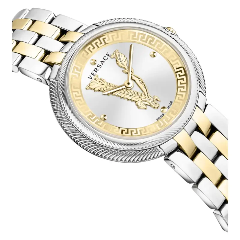 The Versace Thea (VE2CA0623) is a stunning testament to the House’s ability to blend contemporary fashion with classic Swiss watchmaking. This 38mm women’s timepiece is designed for the modern trendsetter who values both substance and style. Featuring a brilliant white sunray dial, a two-tone IP yellow gold and silver finish, and the iconic “V” logo, the Thea collection represents a sharp, geometric evolution of the Versace aesthetic. It is a bold statement piece that brings a touch of Milanese luxury to the everyday.