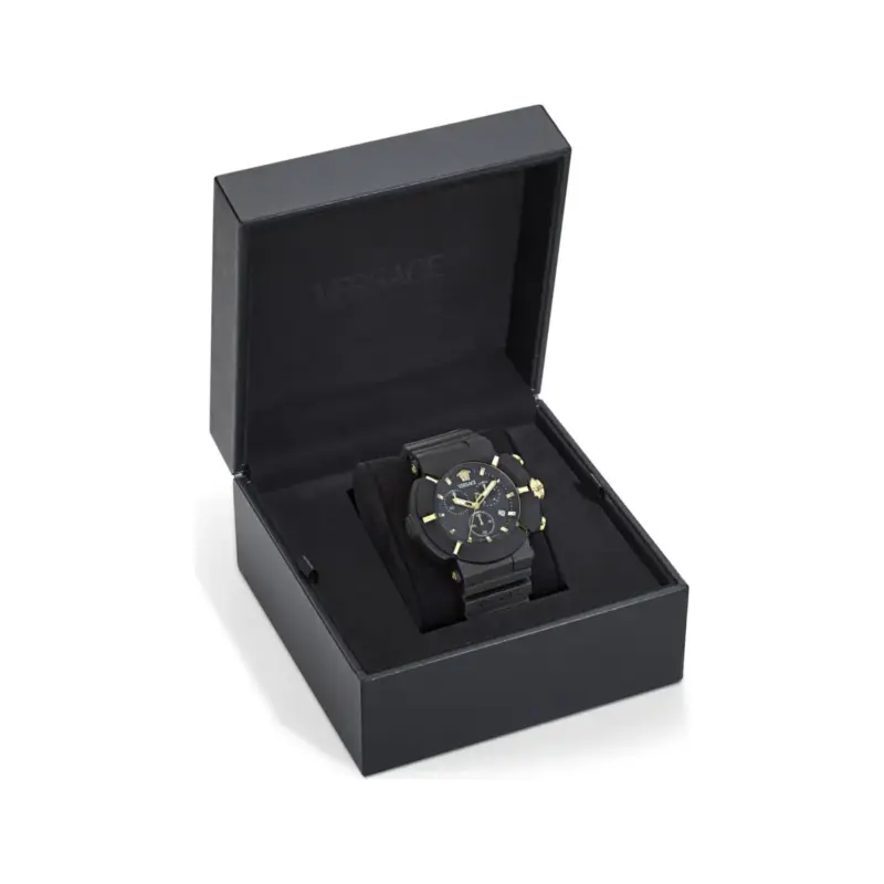 The Versace V-Real Active (VVE0L00125) is a revolutionary addition to the House’s watchmaking heritage. By combining a lightweight, sustainable architecture with the high-gloss opulence of the Medusa, Versace has created a timepiece that defines the “Athleisure” era. This 45mm chronograph is designed for the man who is constantly on the move, offering a robust construction that never compromises on style or brand prestige.