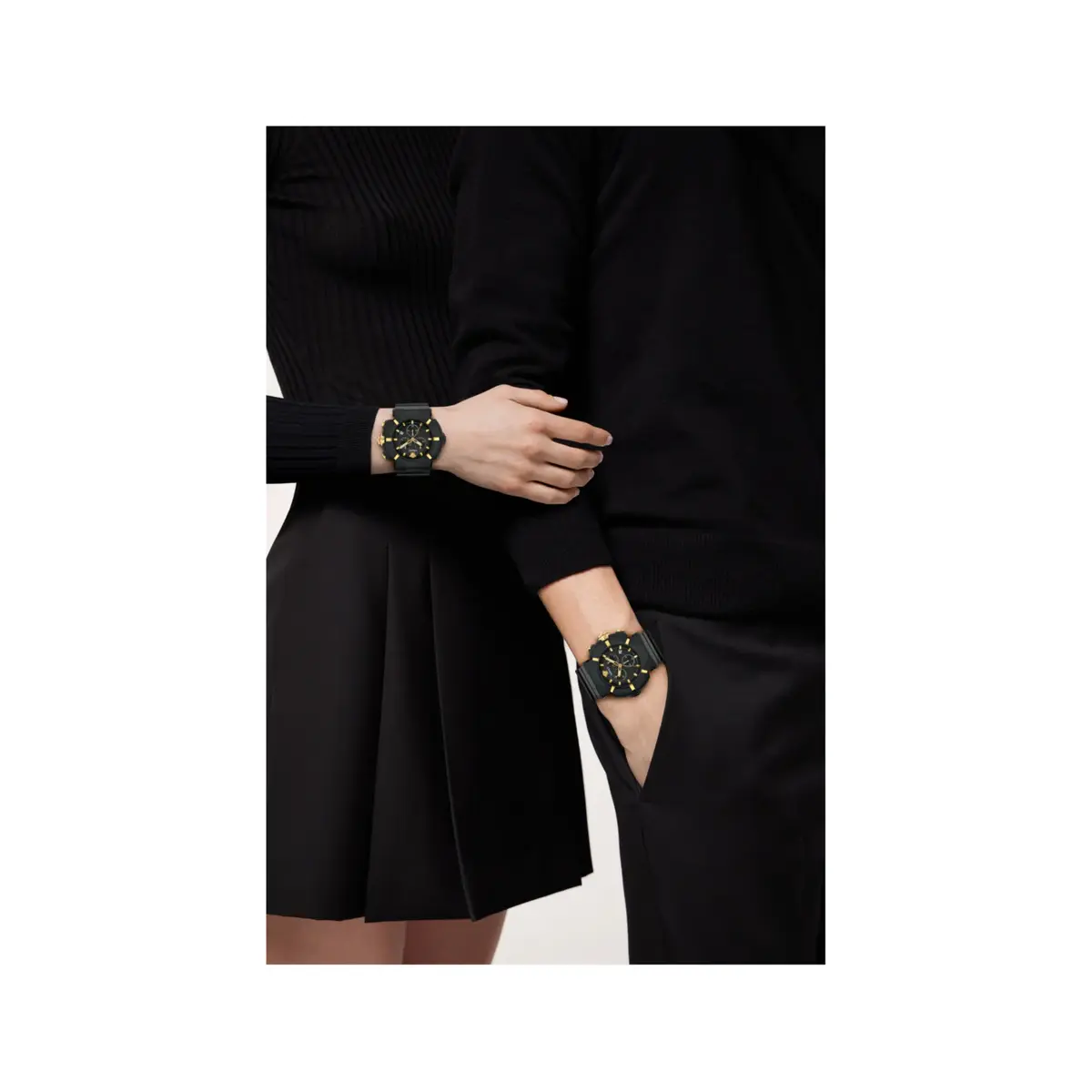 To preserve the finish of your Versace V-Real Active VVE0L00125, we recommend cleaning the silicone strap and polycarbonate case with a damp, soft cloth after any intense physical activity. This prevents the buildup of salts and natural oils that can affect the matte finish over time. While the watch is water-resistant to 50 metres, it is best to avoid salt water to protect the gold-tone accents on the dial. The sapphire crystal is exceptionally durable, but ensure the crown is fully pushed in before any exposure to moisture. Always store the timepiece in its original Versace presentation box to protect the internal Swiss movement from accidental impacts.