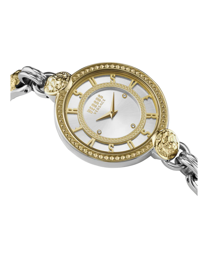 The Versus Versace Les Docks (VSPLL2324) is where high-fashion iconography meets precision timekeeping. This 36mm masterpiece is more than a watch; it is a statement of power and elegance. Featuring a unique interconnected Lion Head bracelet and a radiant two-tone finish, the Les Docks is designed for the woman who leads with style. Whether you are navigating the boardroom or a gala, this timepiece ensures you do so with the unmistakable flair of the Versus Versace DNA.