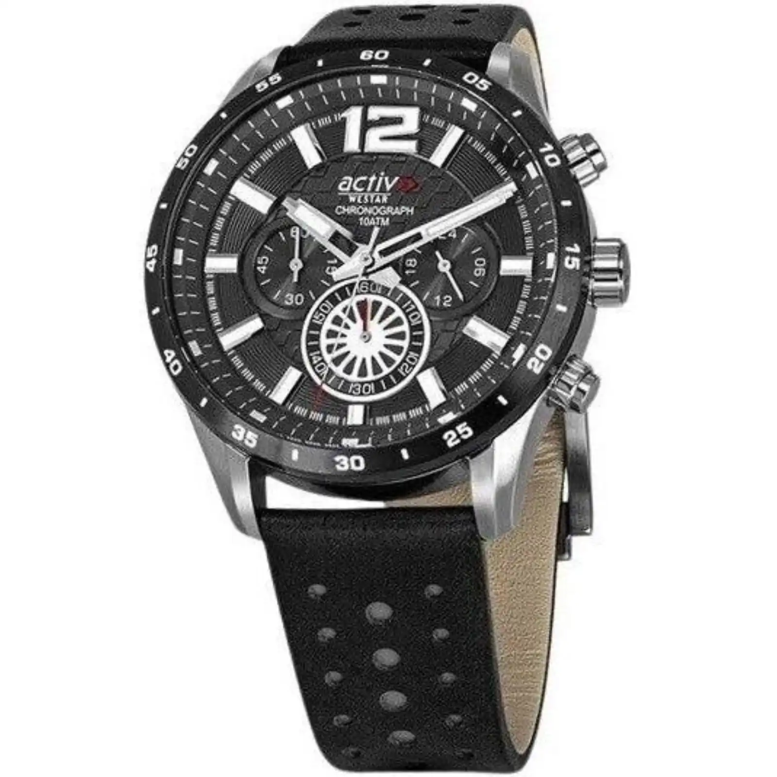 Westar Activ Chronograph Leather Strap Black Dial Quartz 90249SBN103 100M Men’s Watch