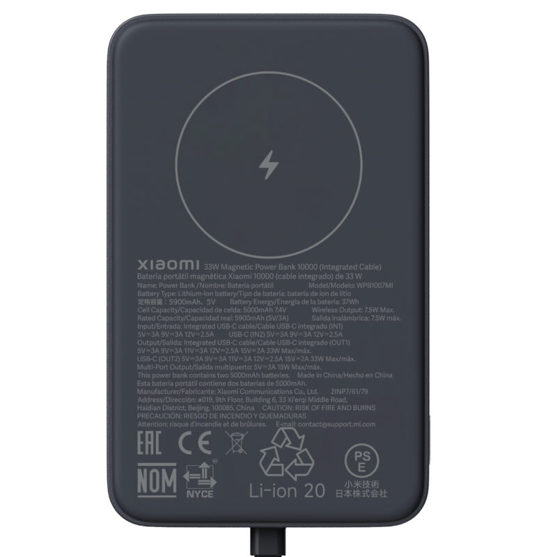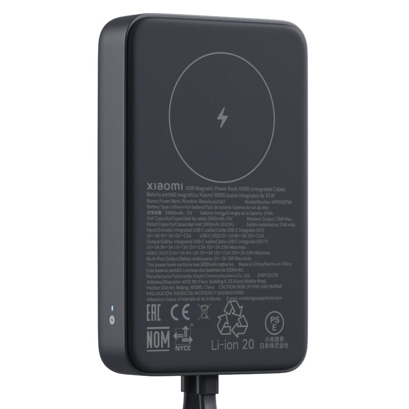 - Connect with immediate ease using the integrated USB-C cable, eliminating the necessity to carry additional charging wires for your Xiaomi power bank.