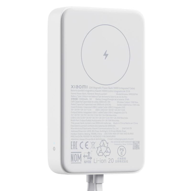 - Connect with immediate ease using the integrated USB-C cable, eliminating the necessity to carry additional charging wires for your Xiaomi power bank.
