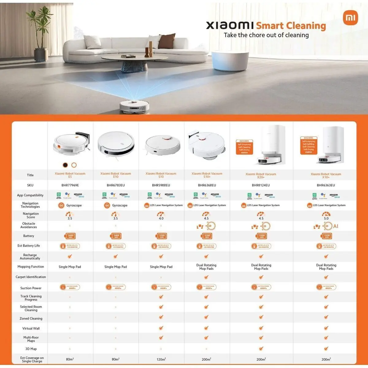 You can even control the Xiaomi Robot Vacuum E5 remotely through the Mi Home/Xiaomi Home app to control cleaning schedules and free your hands to spend more time on what you enjoy. It is also compatible with Alexa- and Google Assistant-enabled devices.