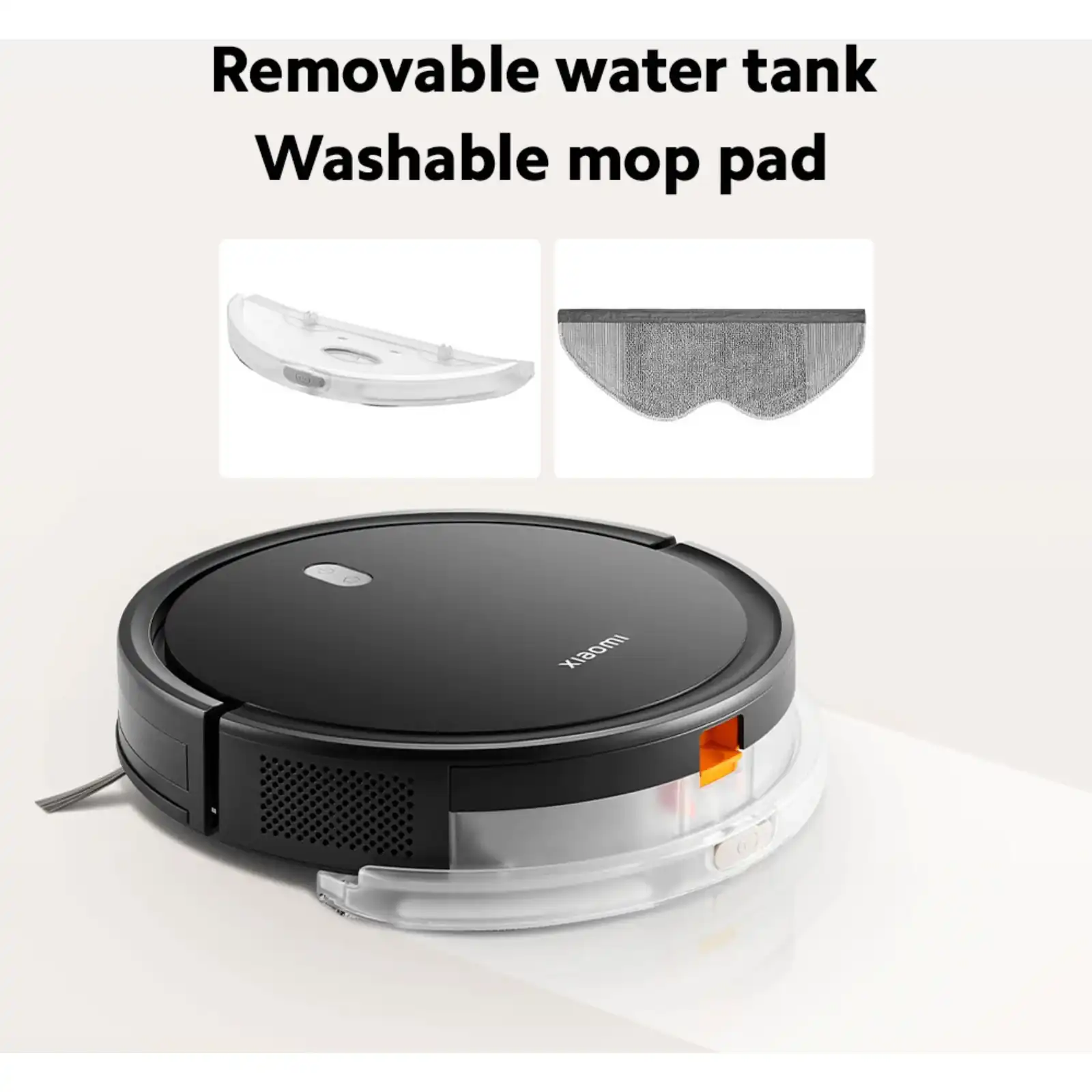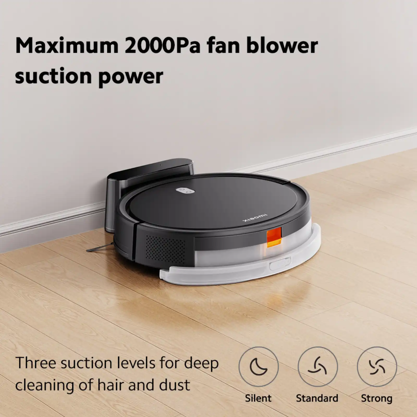 Equipped with advanced components such as dual-sided brushes, a nozzle, a dustbin filter, and a suction fan, it offers a thorough and highly efficient cleaning experience. With a maximum suction power of 2000 Pa from the fan blower, you can easily meet your daily floor cleaning needs. Its three suction levels for deep cleaning of hair and its infiltrating water tank with the washable mop pad make the Xiaomi Robot Vacuum E5 even easier and more convenient to use around the house.