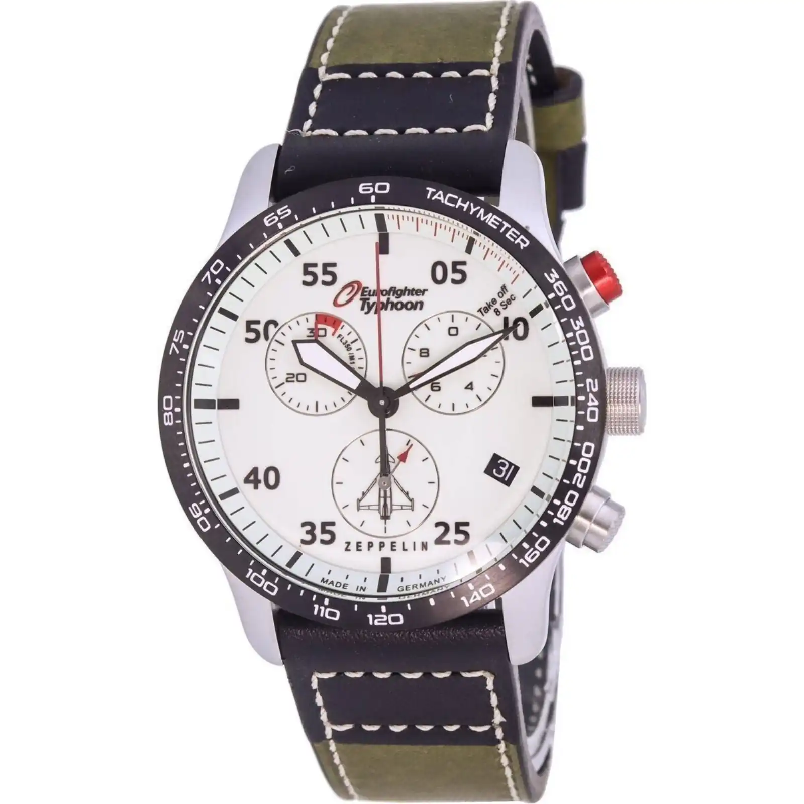 Stainless Steel Case Leather Strap Quartz Movement Caliber: G10.212 Mineral Crystal Beige Dial Analog Display Tachymeter Scale Chronograph Function Luminous Dial Date Display See Through Case Back Buckle Clasp 100m Water Resistance