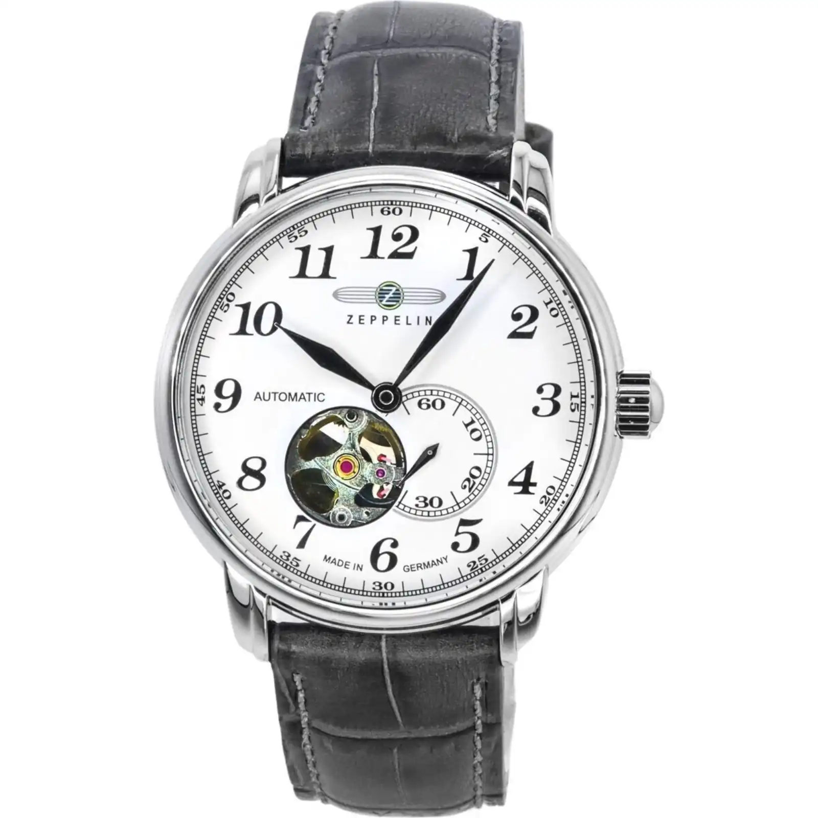 Zeppelin LZ127 Graf Leather Strap White Open Heart Dial Automatic 76661 Men’s Watch